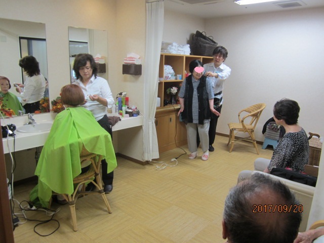 本日は訪問美容の日だったのですが、いつも理美容の看板、こちらも秋の装いになりました。
