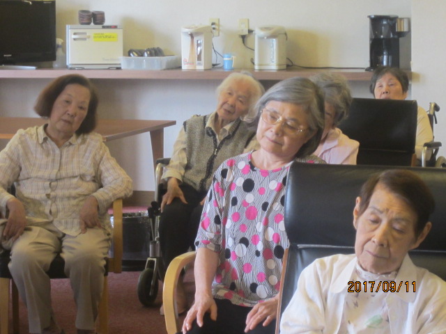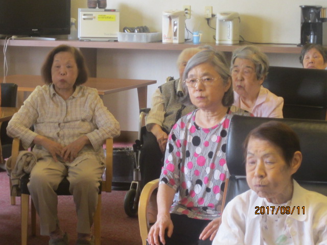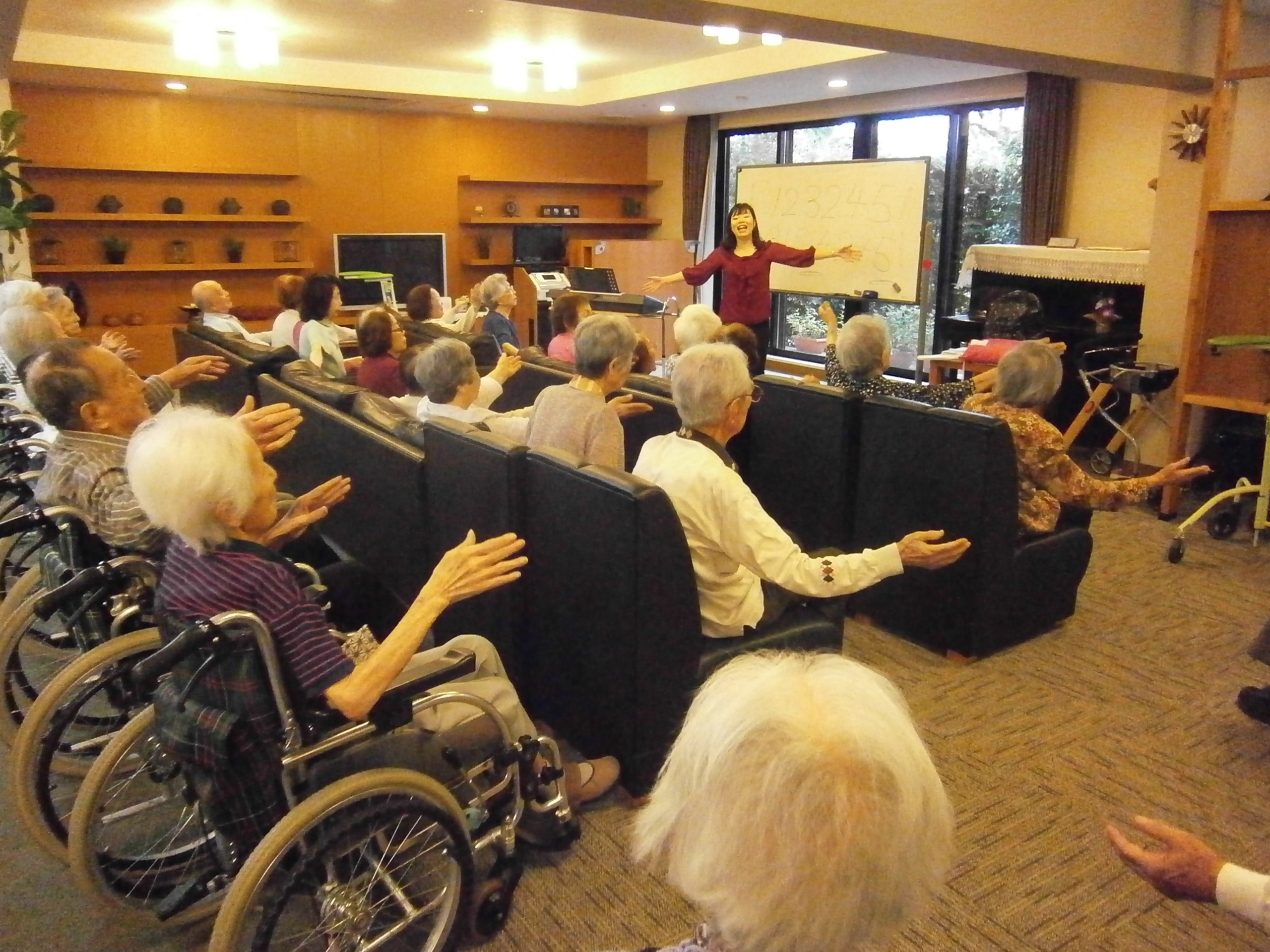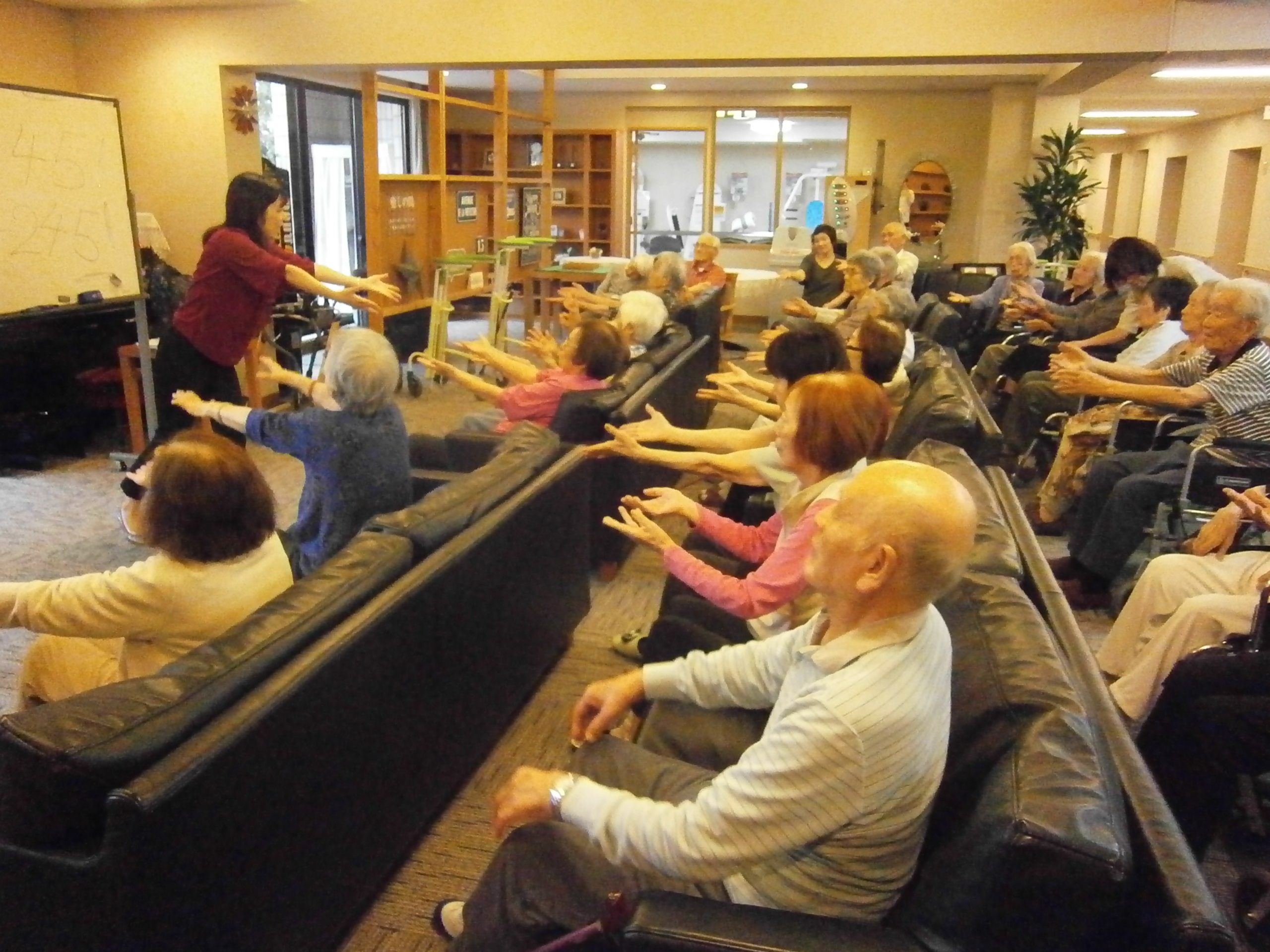 嚥下機能が衰えると、本来食道に入る筈の食べ物が気管に入ってしまい、誤嚥性肺炎という病気を発症しやすくなり、非常に危険です。というわけで、今日もご入居者様は、体操に励んでいらっしゃいます。