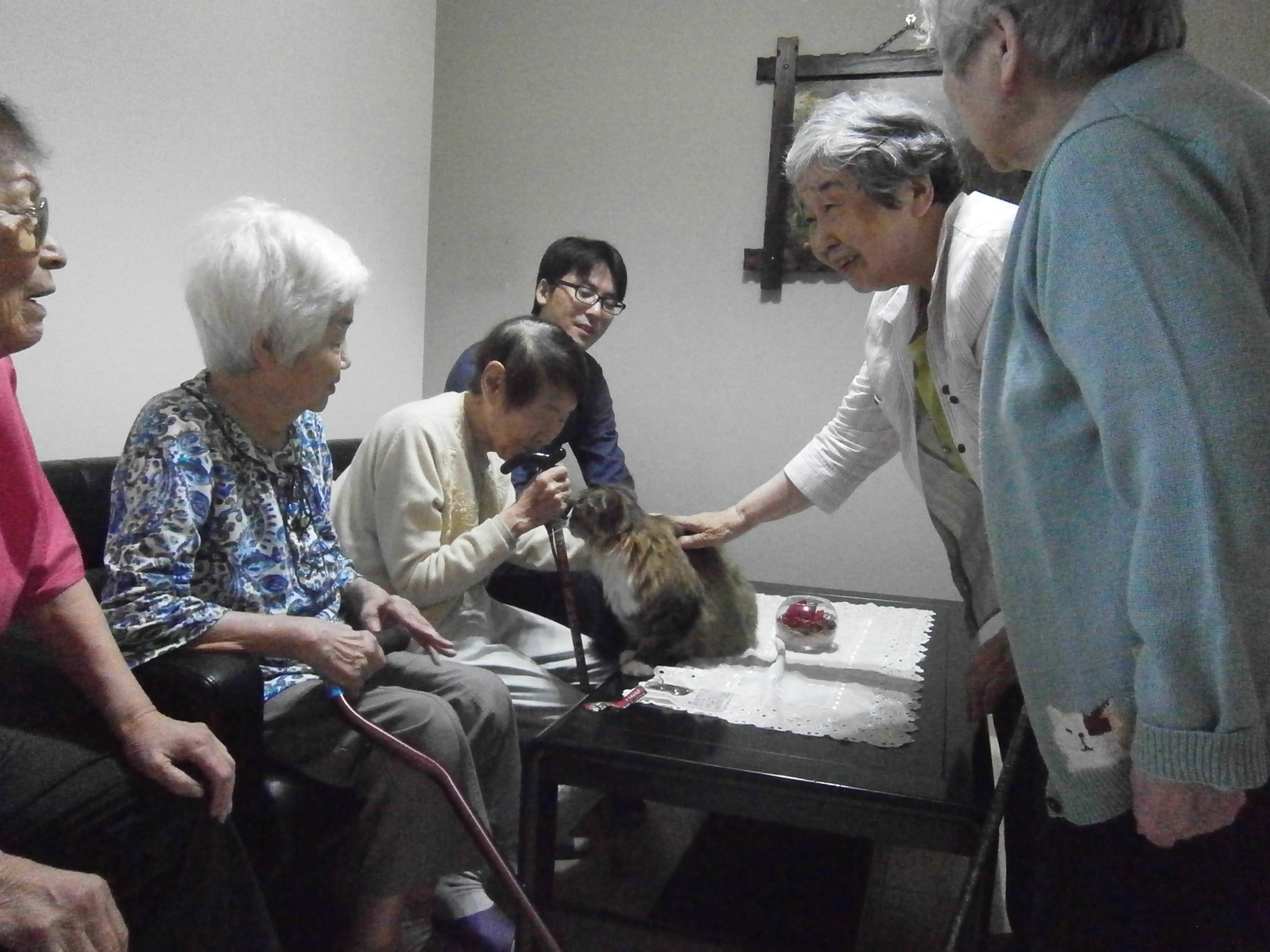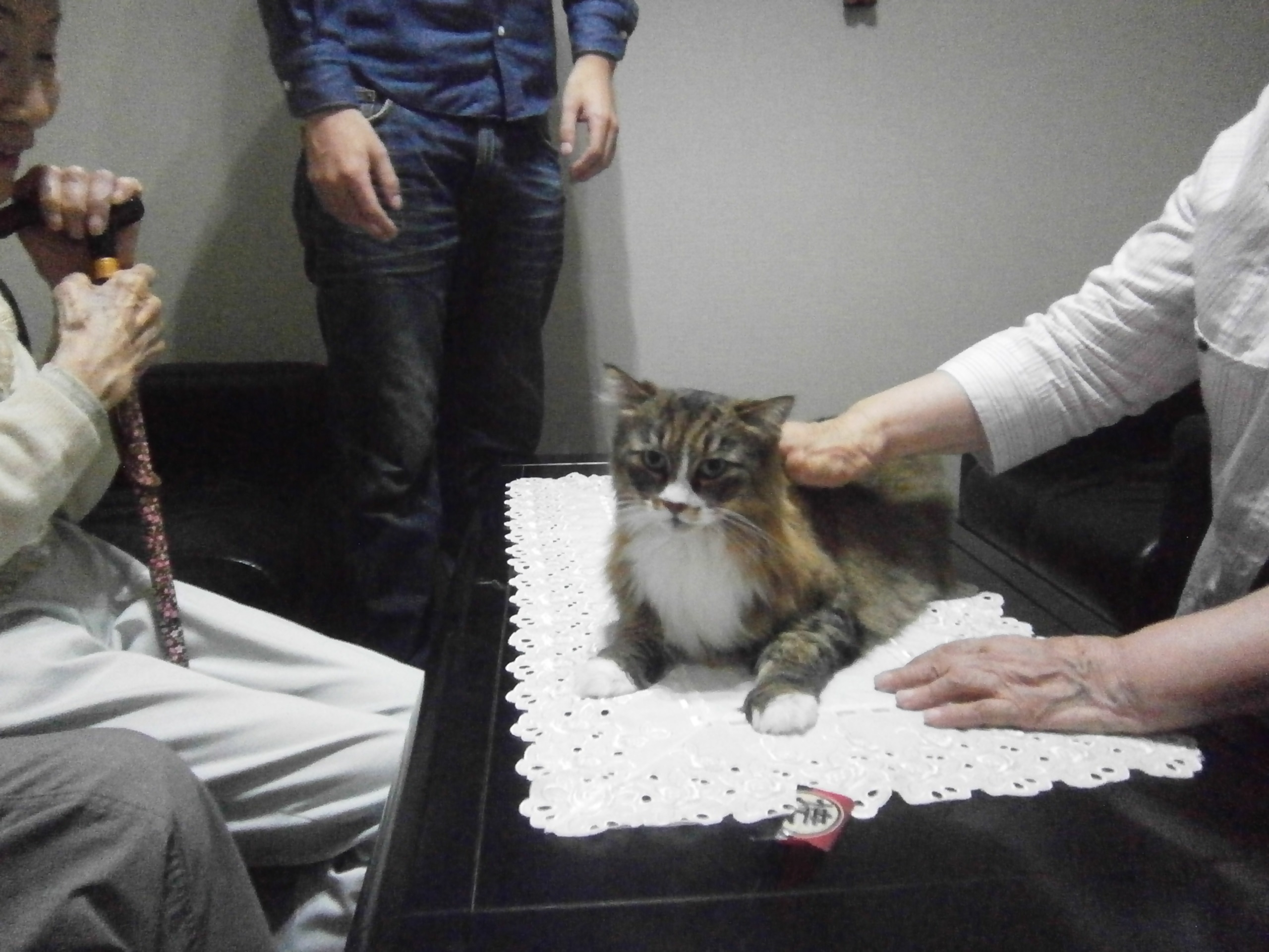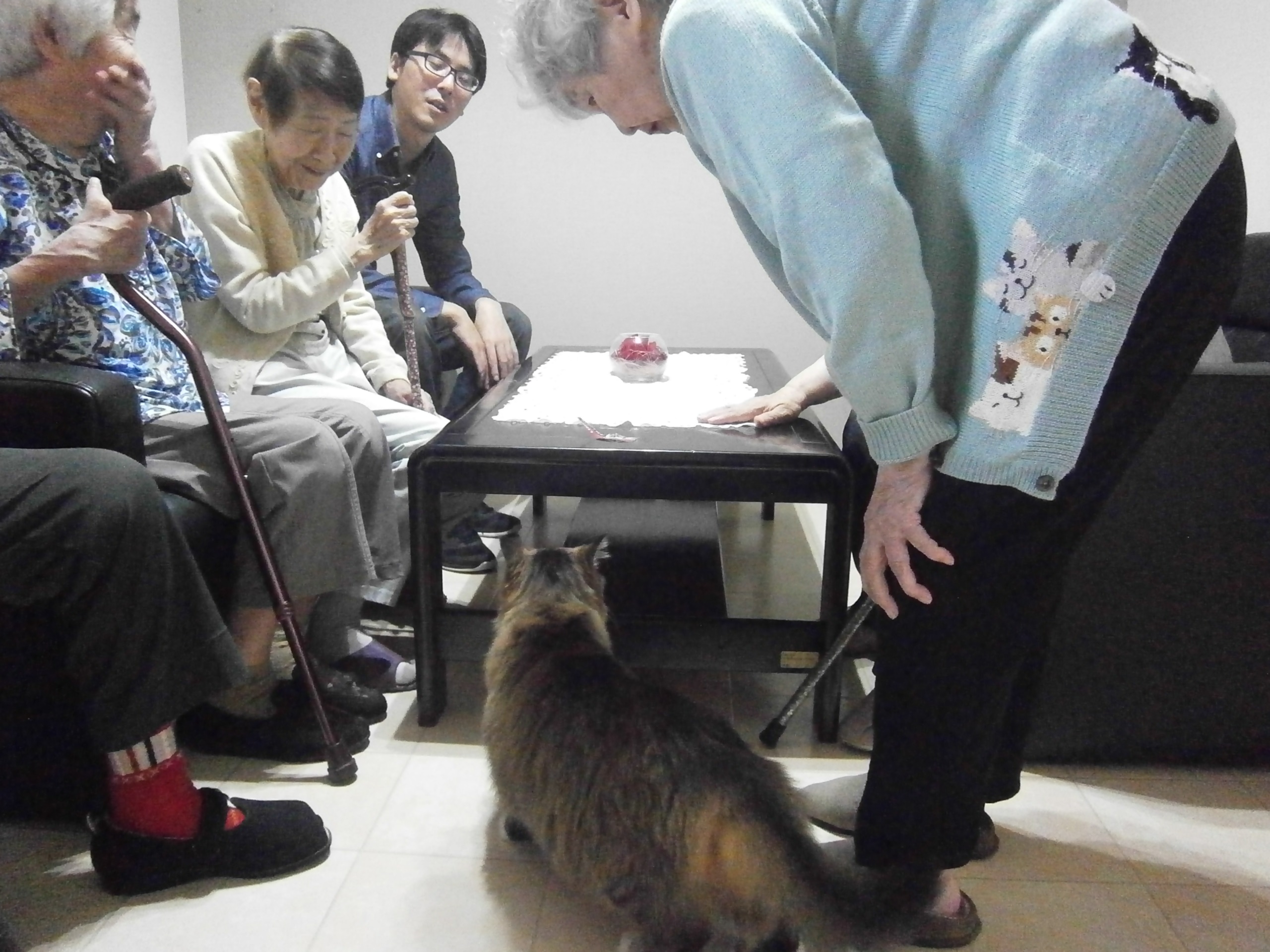 その後音楽療法が終わると、猫好きな入居者様が続々と集まり、