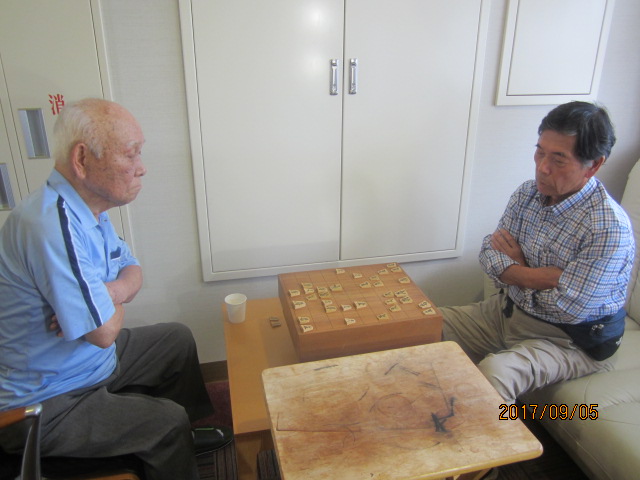 ずっと探していた将棋のボランティアさんが見つかりまして、本日から来てくださるになり、早速ご入居者様の対局していただいています。