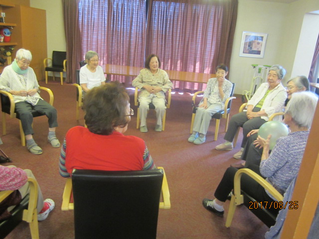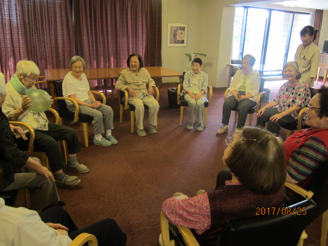 お子さんが使うようなソフトなボールですが、風船とは違って、力いっぱいやらなくても飛ぶし、よく弾むので、ボールの行方にかなり盛り上がっていました。