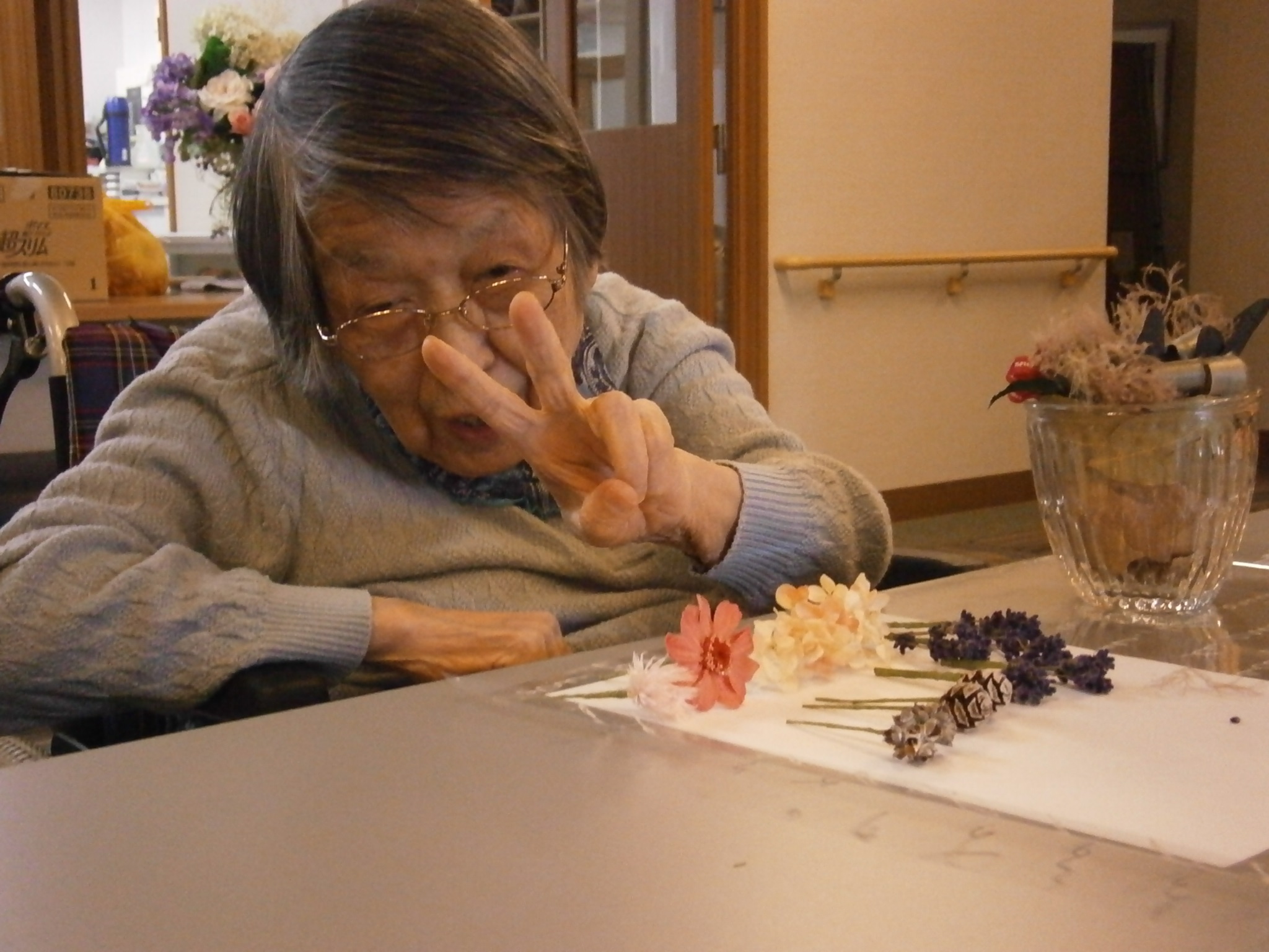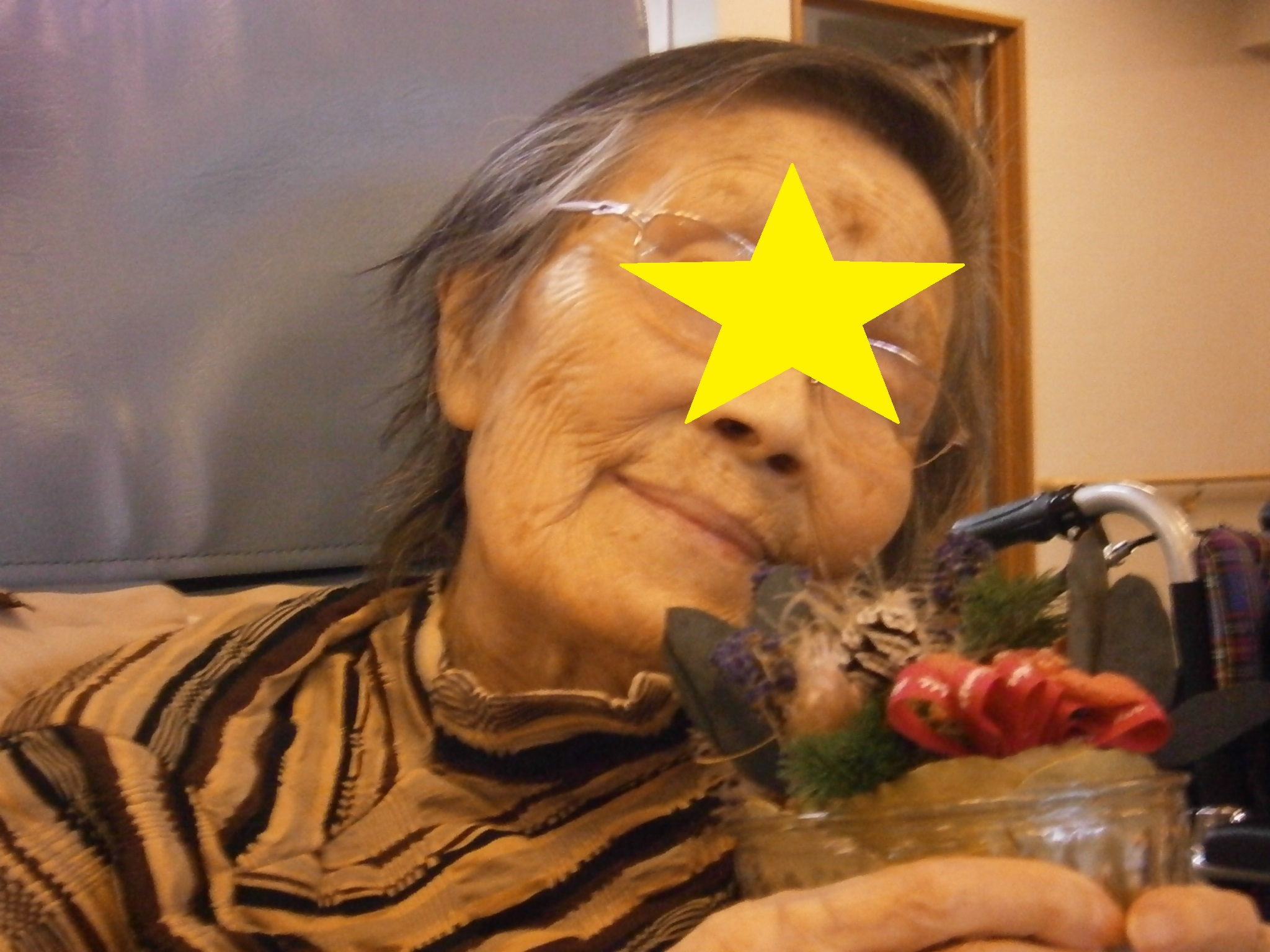 本日、92歳のお誕生日を迎えたご入居者様に、施設からささやかなプレゼントをお渡ししてお祝いしました。