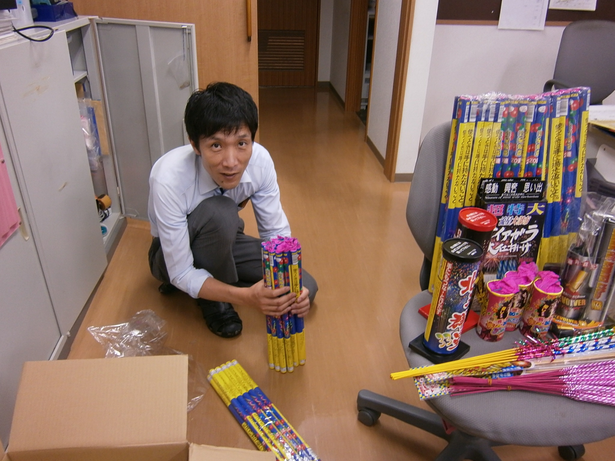 施設長が束で持っている花火、どんな花火になるか皆さん想像つきますか?