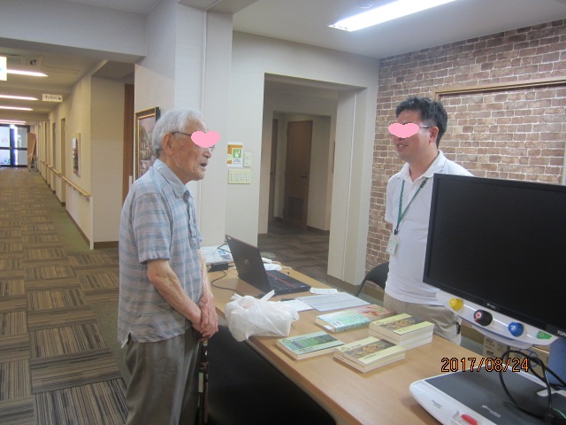 開始早々「待ってたよ~^^」と、ご入居者様がいらして、本を物色されています。