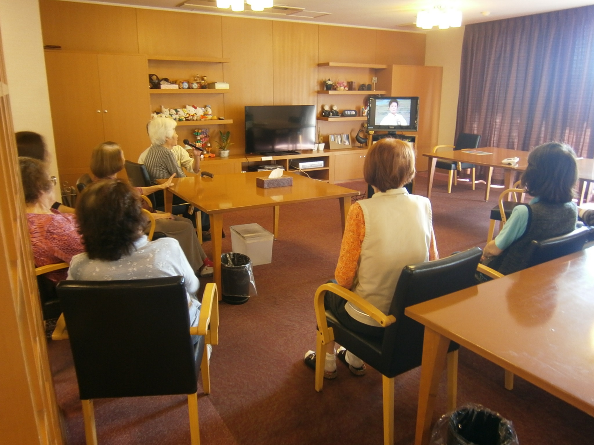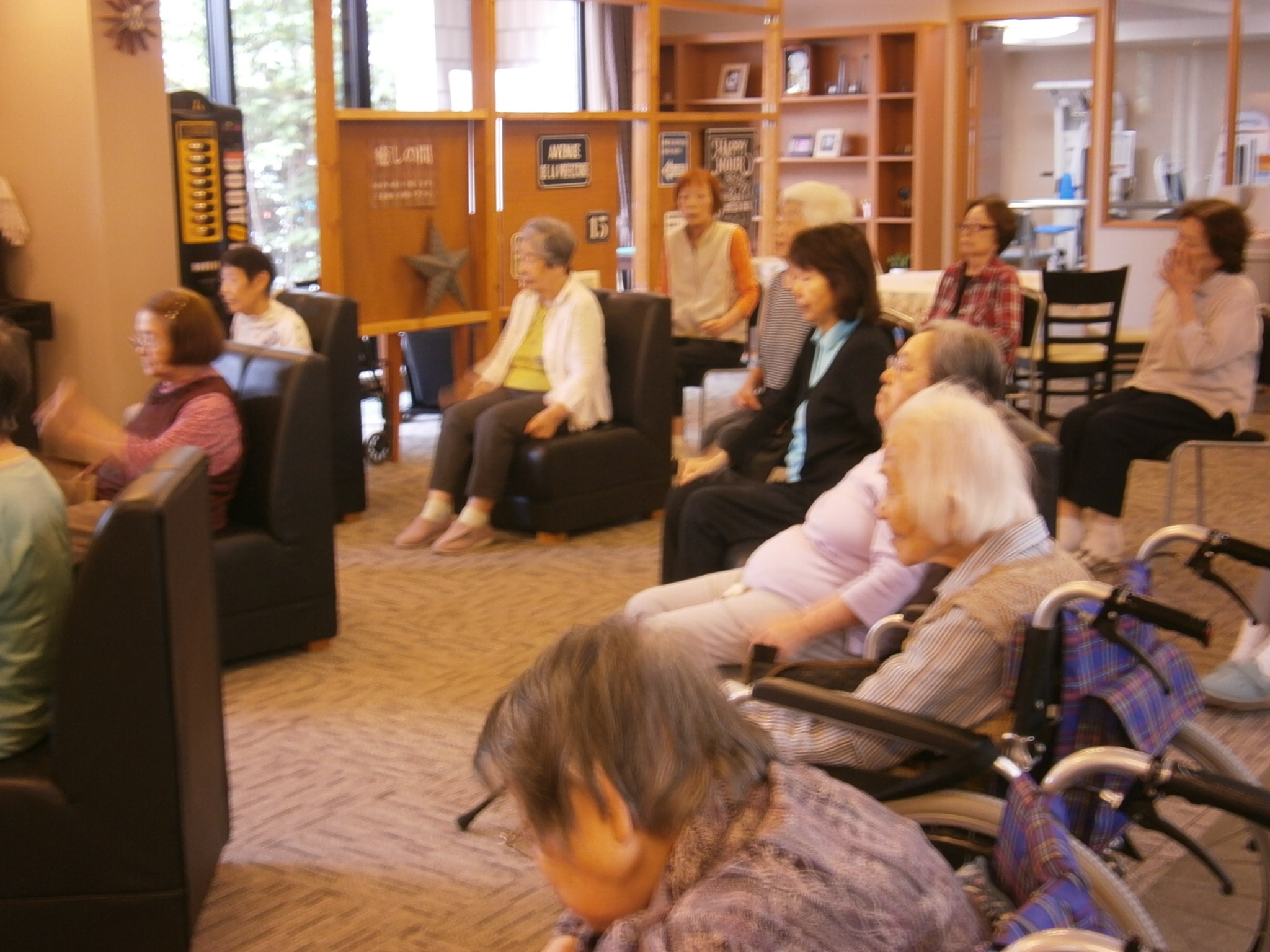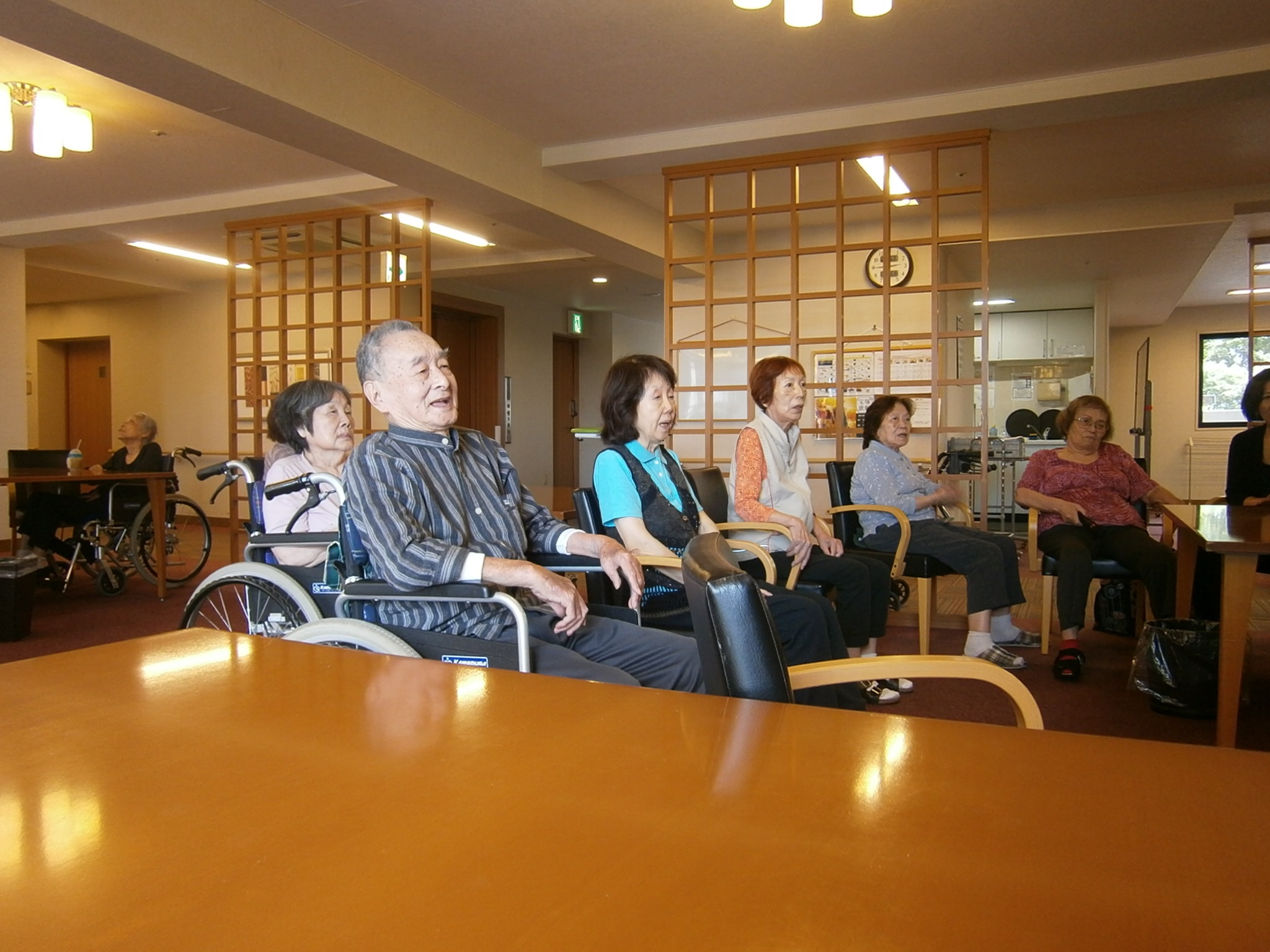 入居者様がマイクを持ち昔懐かしの歌を歌っておりましたが、