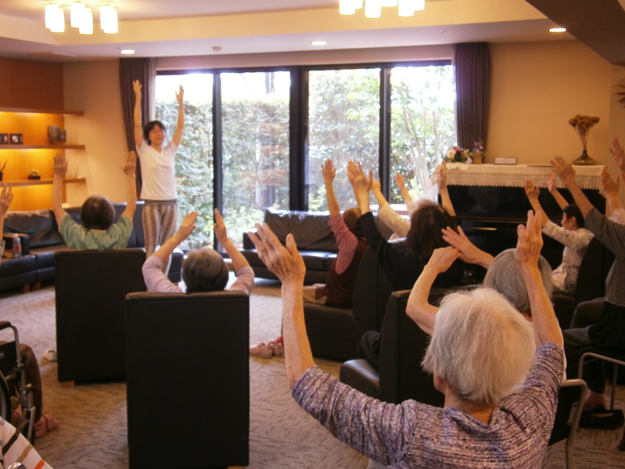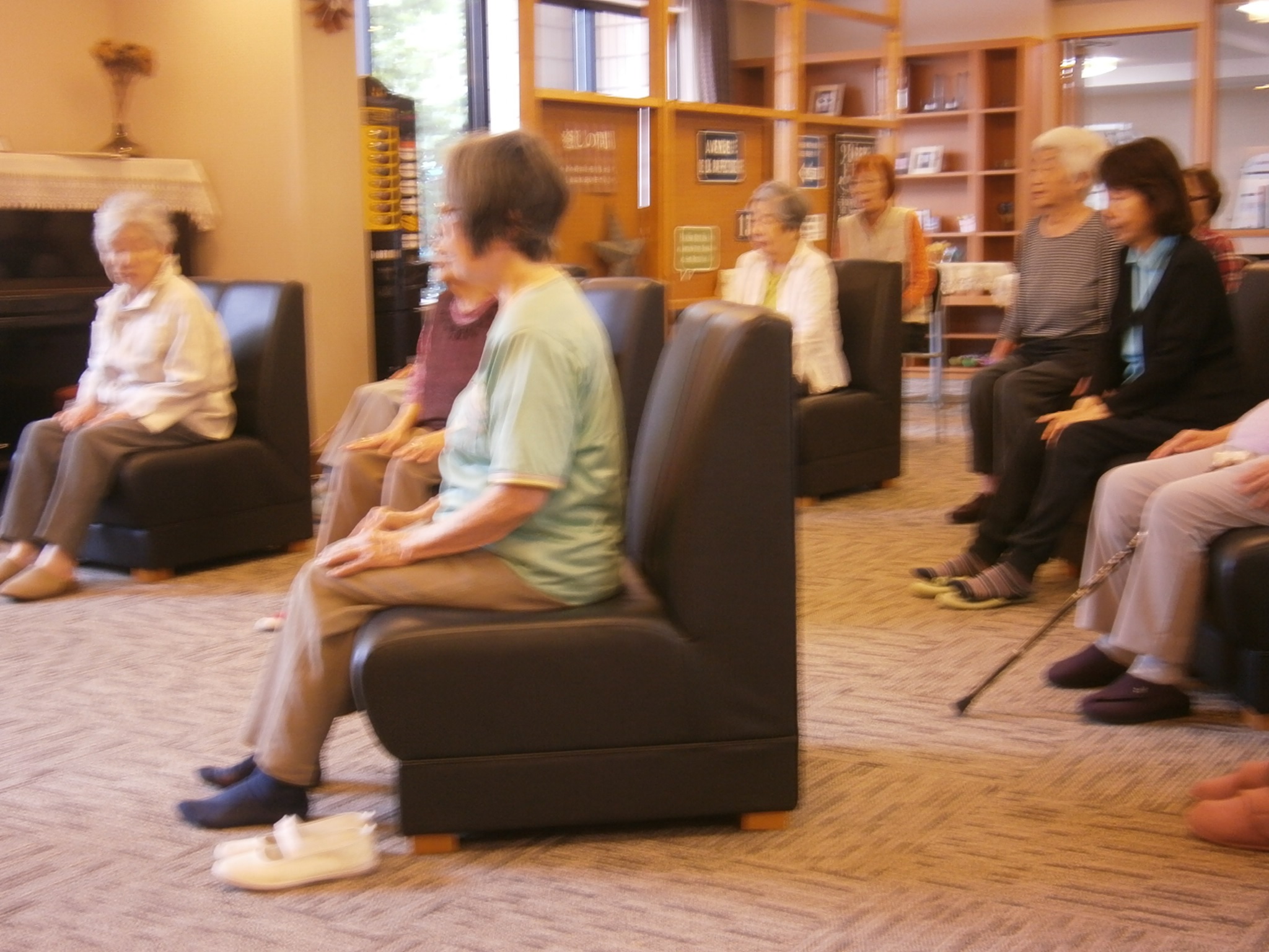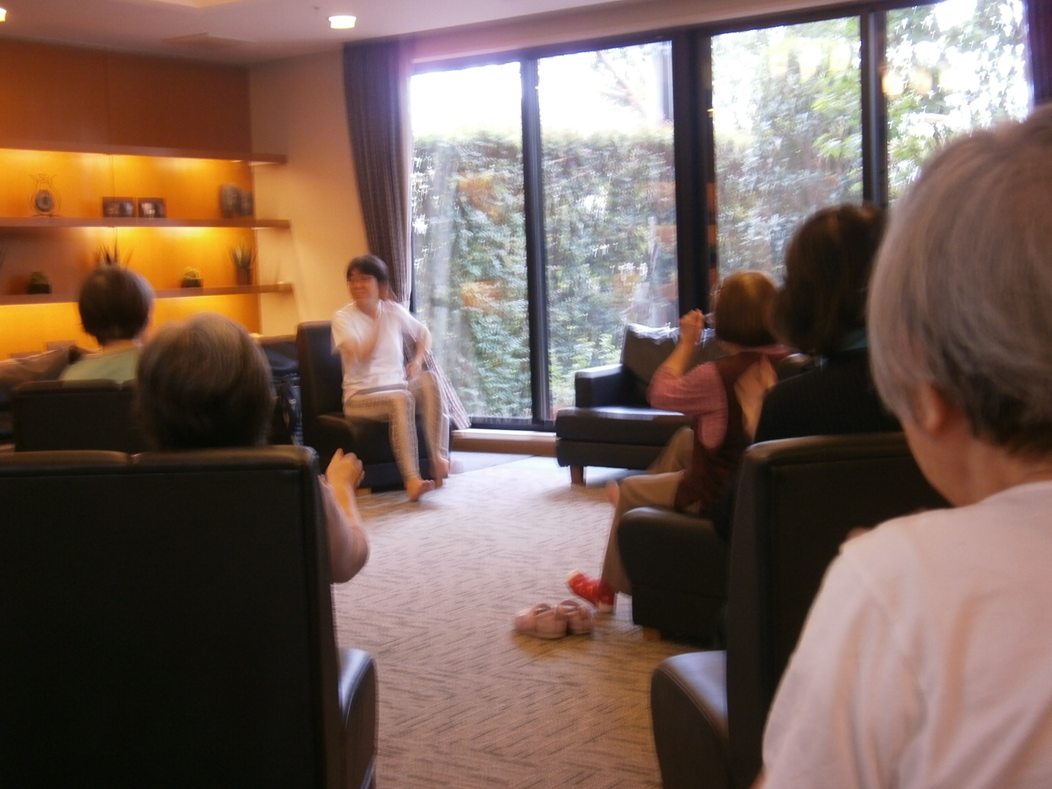 入居者様がマイクを持ち昔懐かしの歌を歌っておりましたが、