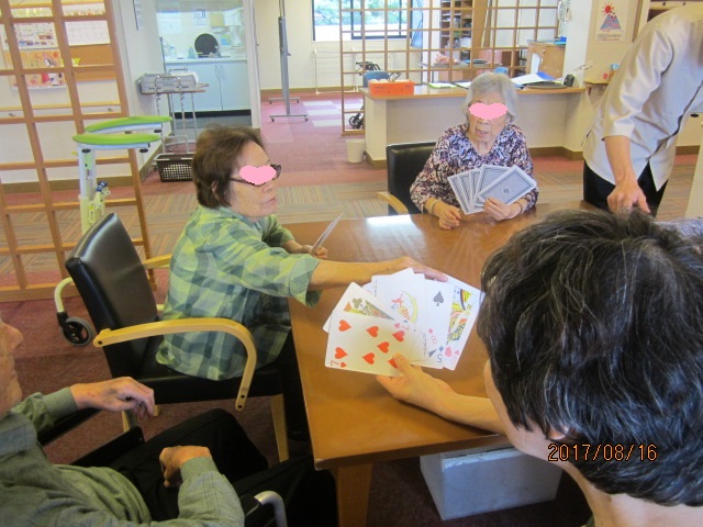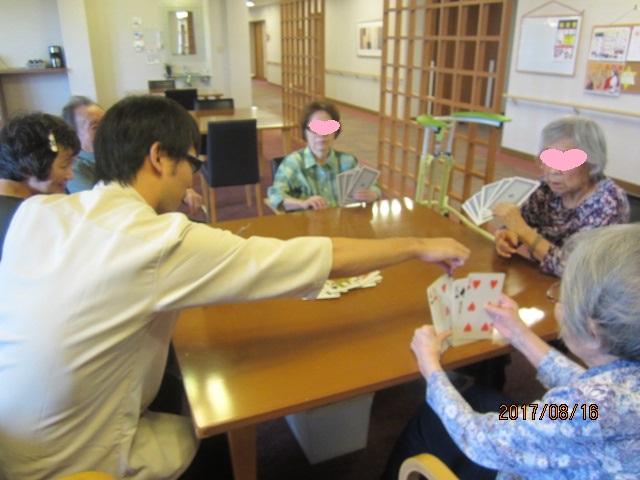 誰しも、一度はやったことのあるトランプゲームだと思うので、ご入居者様にも解りやすい馴染みのある遊びです。