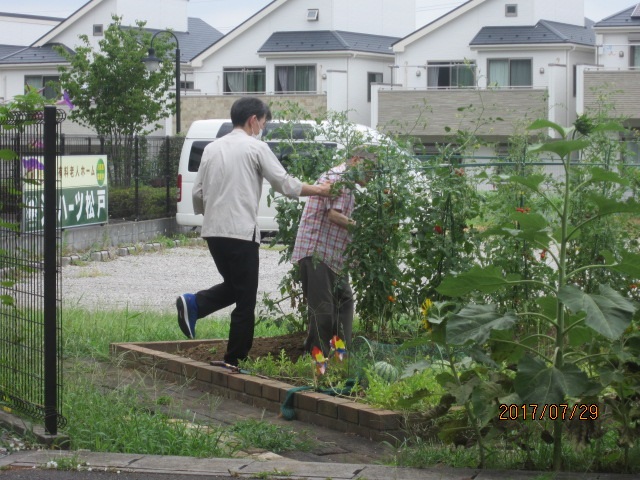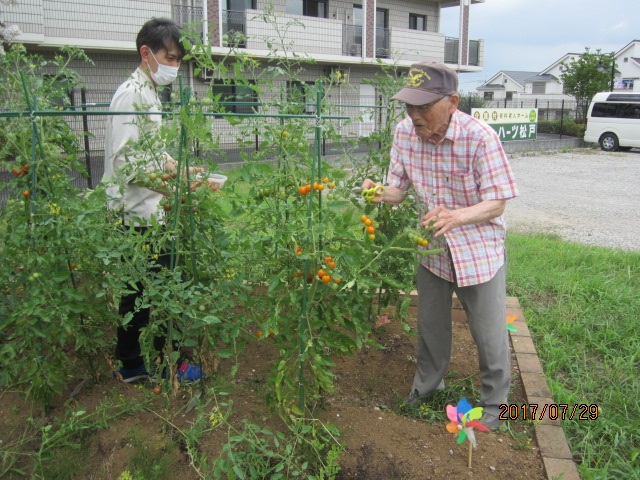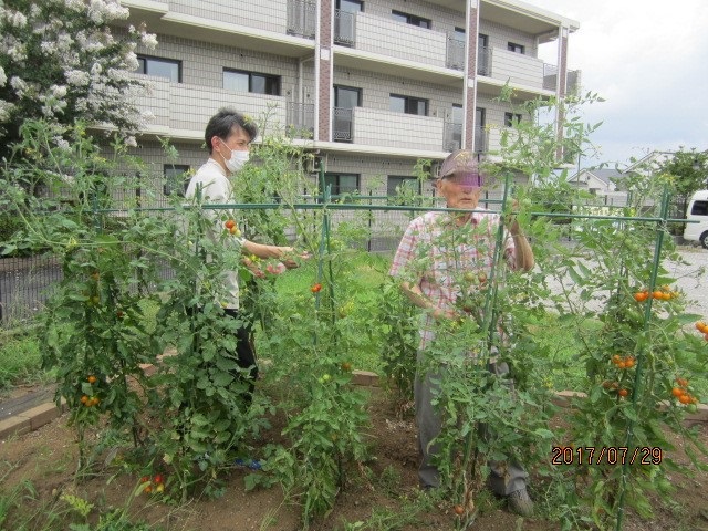畑でもリハビリスタッフの心配をよそに、あちこちのトマトの枝を剪定して歩きましたが、その動きの速いこと(゜o゜)