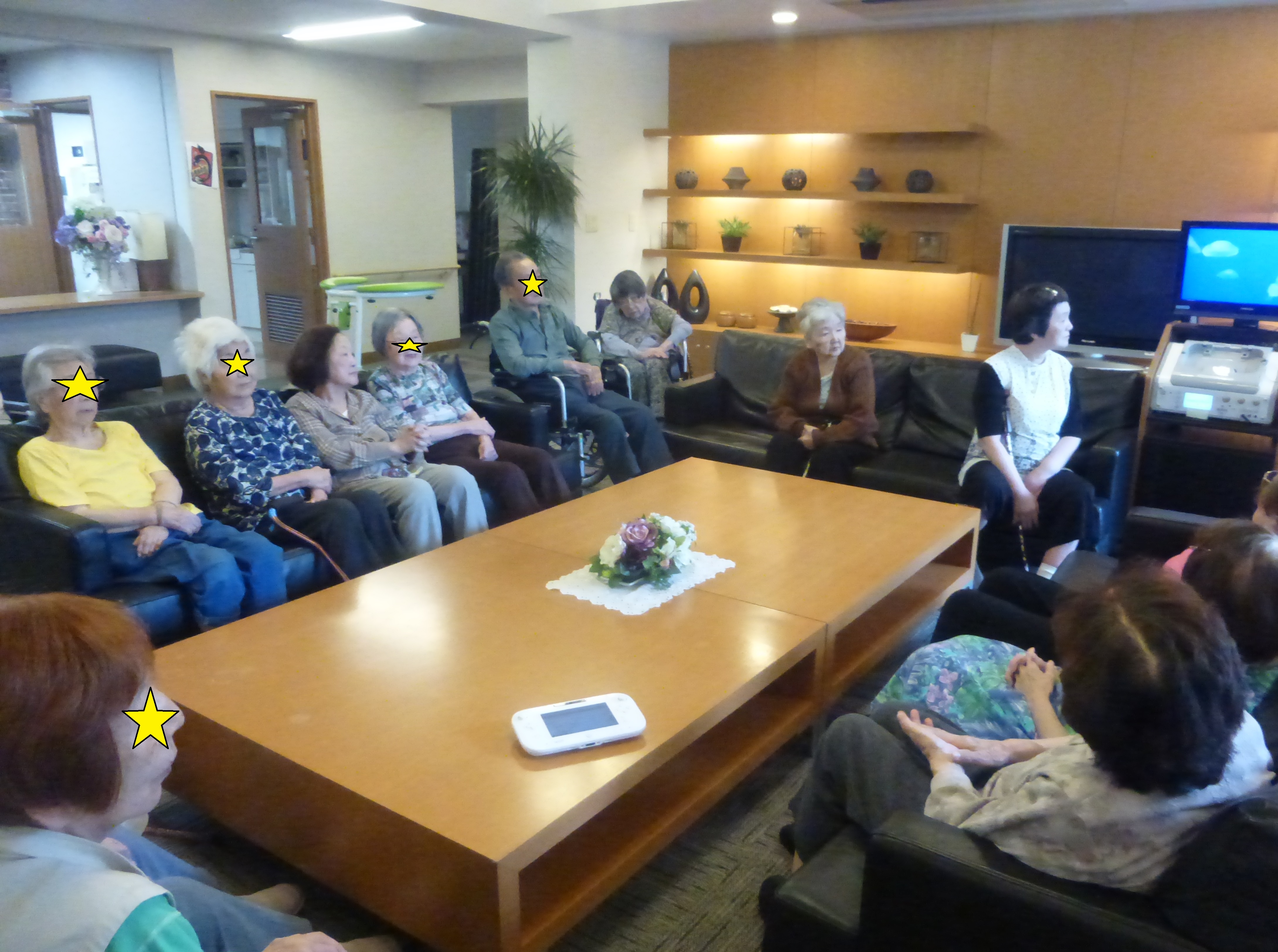 無事に火も付いたところで、入居者様も揃いましたが、まだ早かったためお馴染みのカラオケを流すと