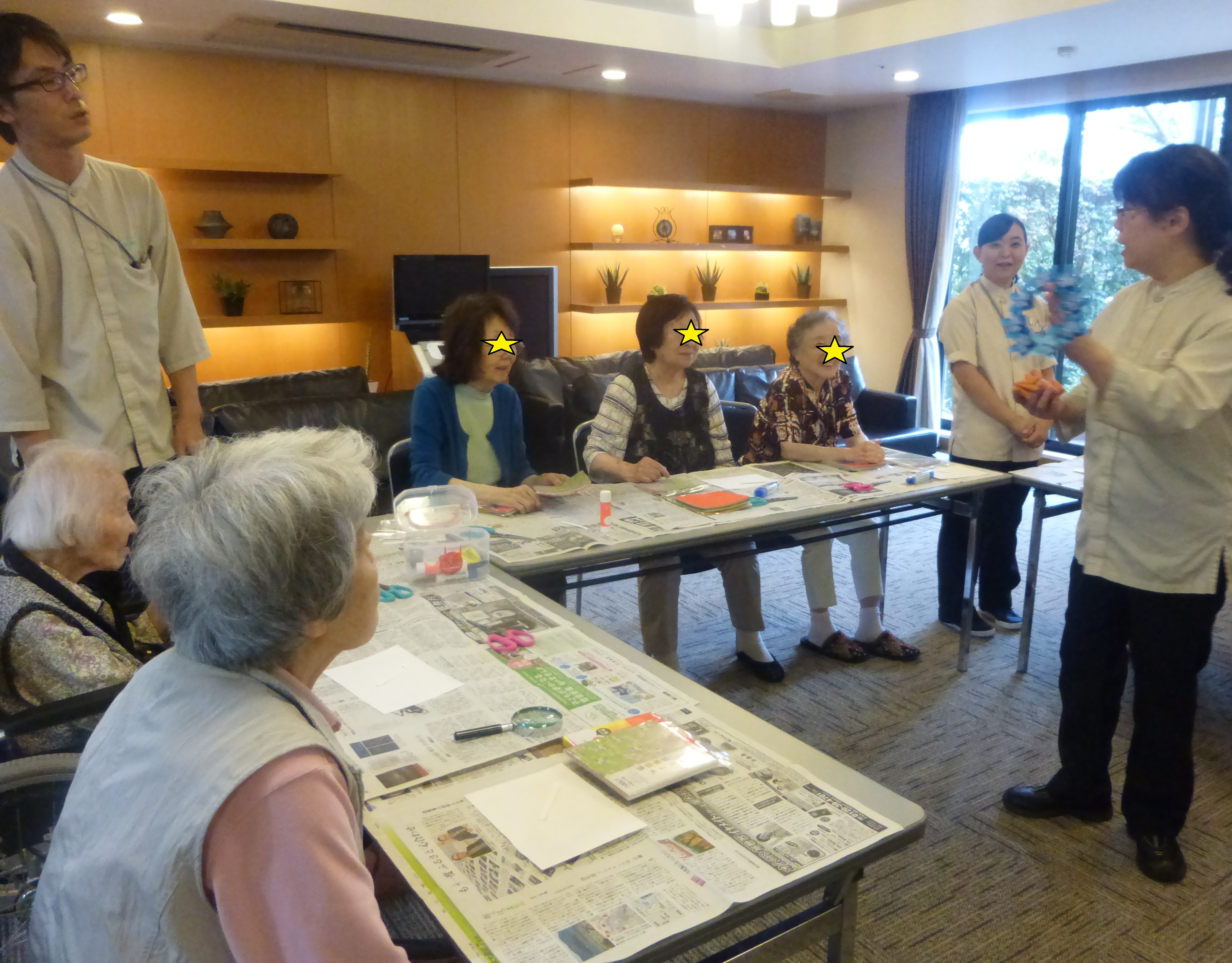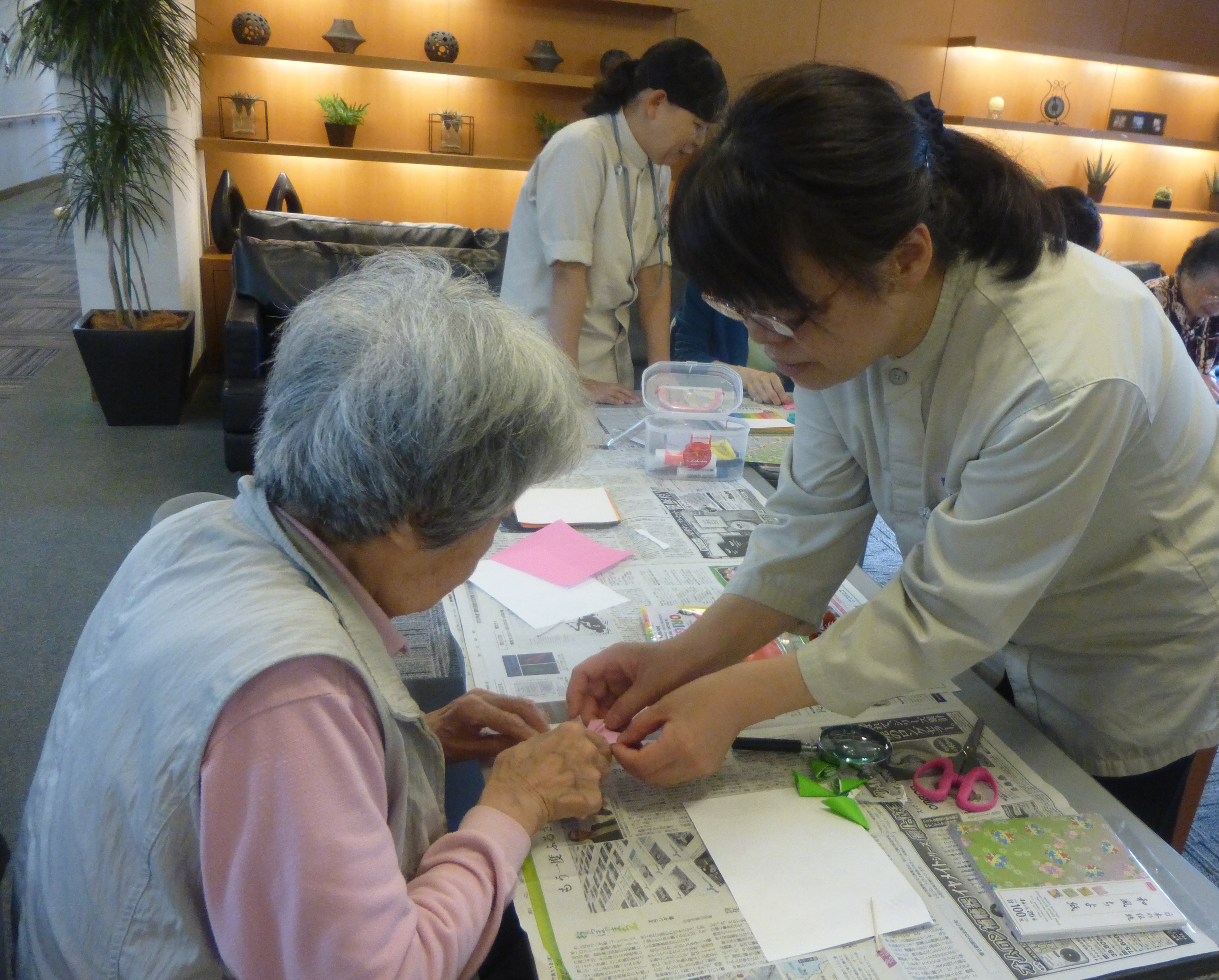 午後のレクリェーションは、介護リーダーによる折り紙教室です。
