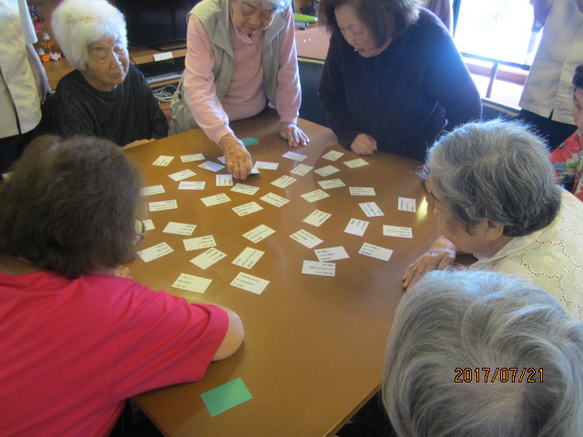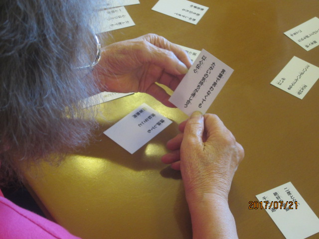 今回は難易度を上げて、スタッフの読みを聴いて読み札を探すという方法で遊んでいます(^_^;)