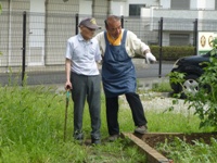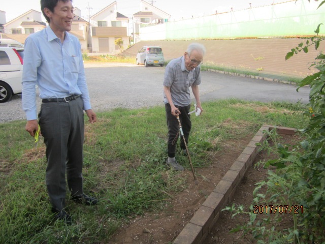 そして、畑の空いてるスペースにトウモロコシを植えたいんだと畑の番人さんの野望へと話は移っていき、その脇で苦笑いの施設長。