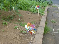 施設長がこの前、風車を買って来ていて、何に使うのかと思ったら畑に刺さってました