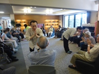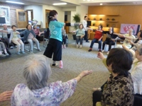 1時間たっぷりでしたが、先生のお手本を見ながら、音楽に合わせて、上手に身体を動かされていました。