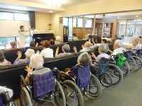 最初こそ恥ずかしがっていたご入居者様でしたが、講師の先生に上手に乗せられ、大きな笑顔!