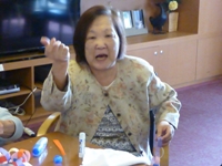 最初に歌いだされたご入居者様は、皆さんが付いてきたことで更に盛り上がり、振り付きで歌い出したため、わっか制作は進まず、最後は遅れを取り戻そうとラストスパートを掛けておりましたが、皆さんが1~2mの飾りを作る中、20㎝の出来上がり・・・(^_^;)