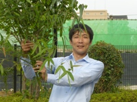 施設長自ら竹やぶに入り、顔を蚊に刺されながらもゲットした笹を片手に記念写真。
