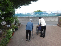 ご入居者様にお散歩のお誘いをしたら、次から次へと外へお出かけ。