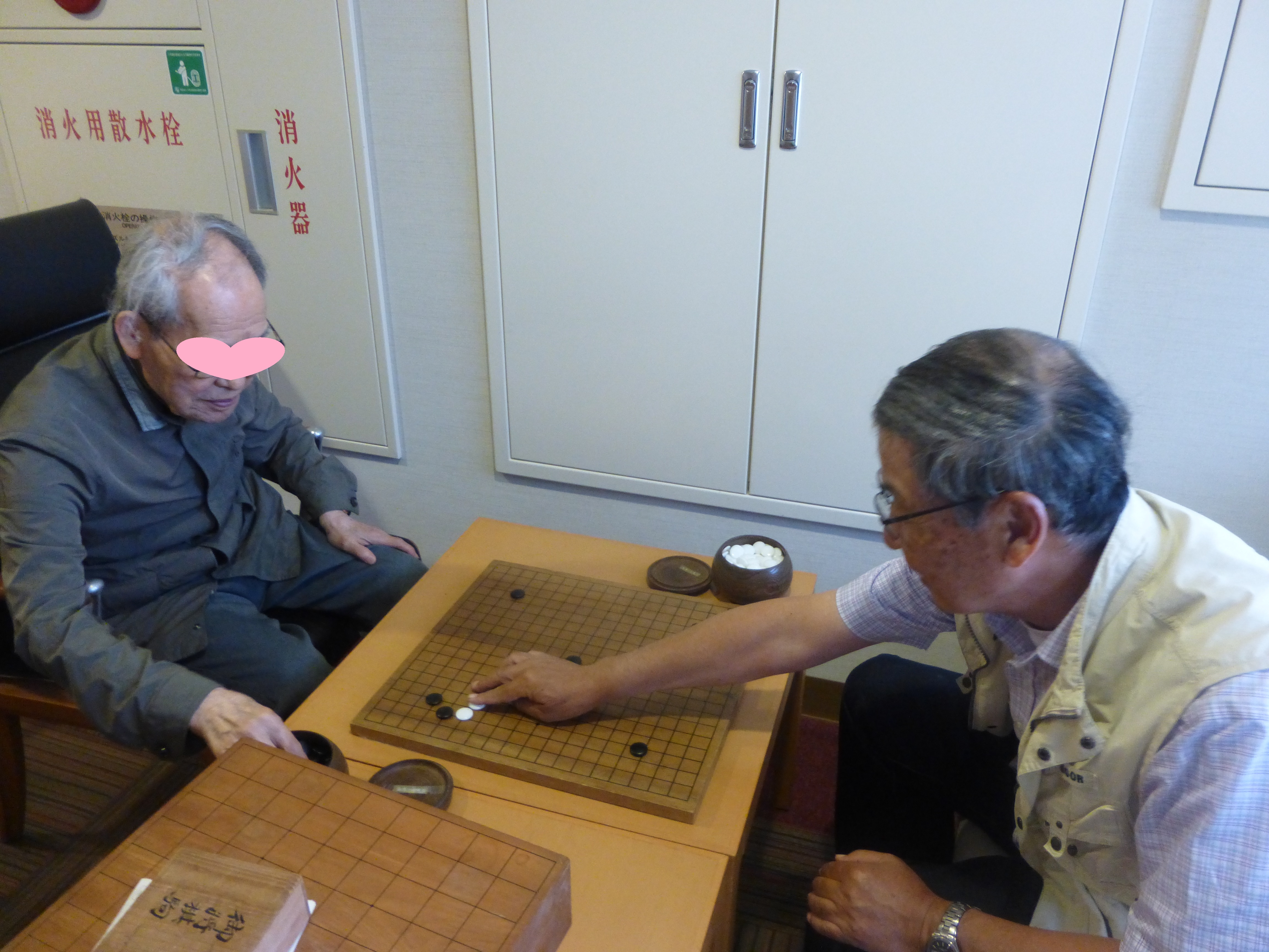 1階でカラオケが盛り上がる中、2階では囲碁の真剣勝負が始まっていました!