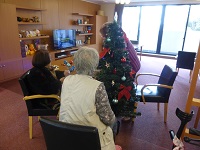 本日は職員のクリスマス飾りと並行して、ご入居者の方にもラウンジ用のクリスマスツリーの