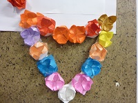 みんなで折った折り紙で、合同作品「ハート」も完成しました〇