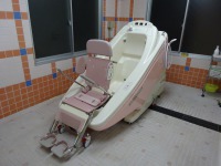 写真は座ったまま浴槽に入れるタイプと寝たままでも安心して浴槽に入れるタイプのお風呂です。