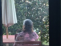 朝早く施設の庭にでて気持ち良さそうに