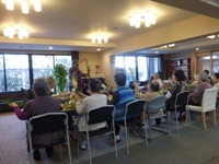入居者の皆さま、「難しいわね」とおっしゃりながらオアシスに花を差す表情は真剣そのもの。