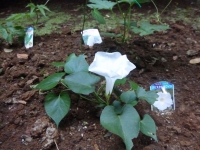 思ったよりも大きく成長はしてはいないものの、初めて朝顔の花が咲きました。