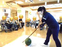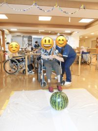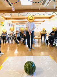 暑い日が続く中、先日、フロアレクリエーションで『スイカ割り』をしました。