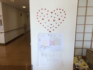 各フロアに特色があり、とあるフロアではご入居者様への嚥下訓練と頭の体操の為、スタッフ厳選の面白い早口言葉が食堂に張り出されていました。