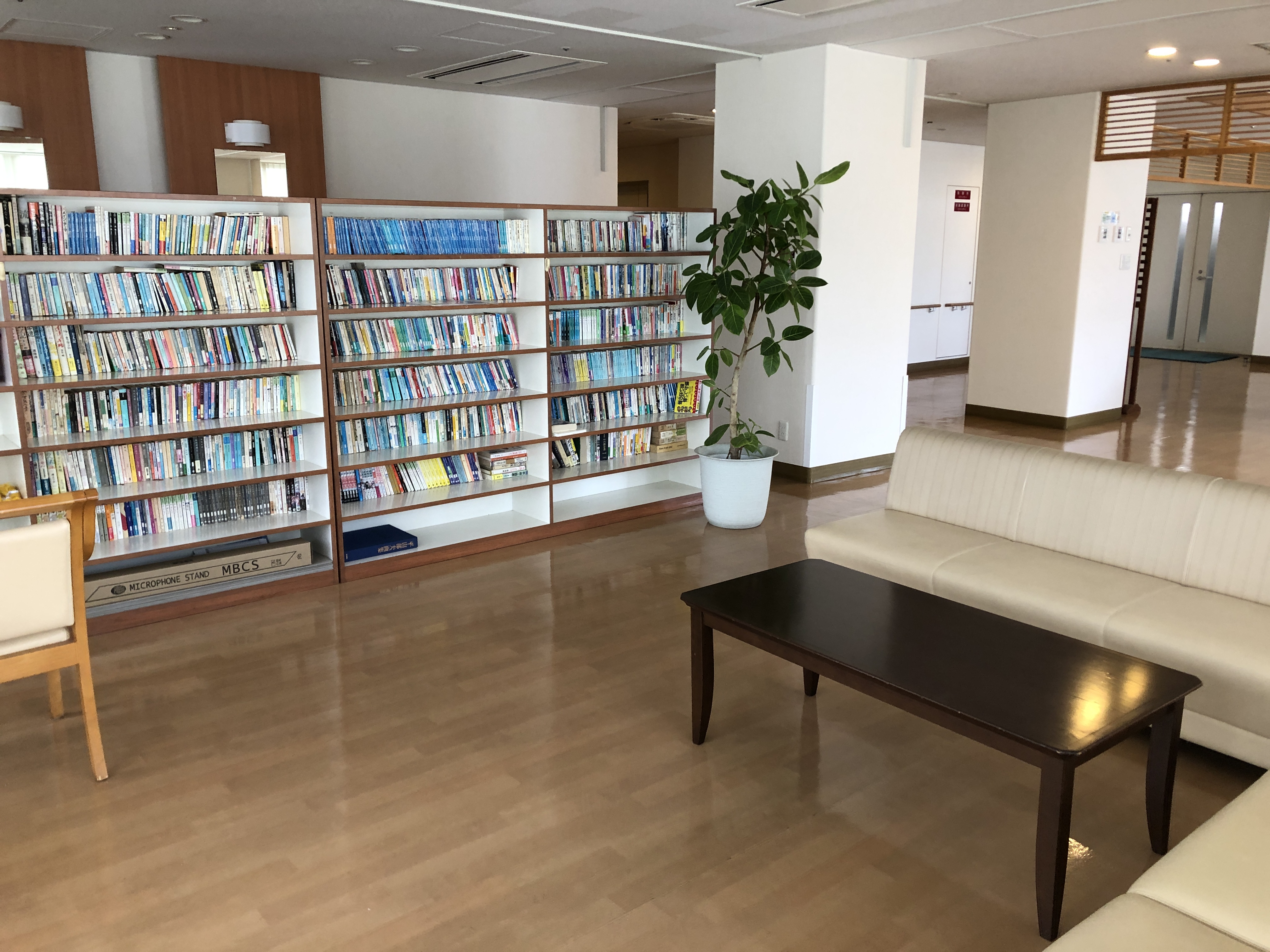 2階の地域交流スペースにはご入居者様が読んで頂けるように沢山の本があります。