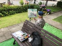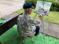 絵がお得意なお方で、梅雨の中休みの日に、正面玄関の桜の木の木陰で、絵を描いてらっしゃいました。