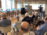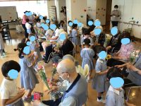 園児さんのかわいいお歌やお花・手作りの絵のプレゼントを頂き、ご入居者様のみなさま顔をほころばせ、目がウルウルとされて心あたたまる会となりました。