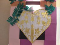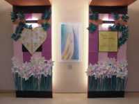 エスペラル城東の正面玄関の飾りもバレンタインデー仕様に変わりました。