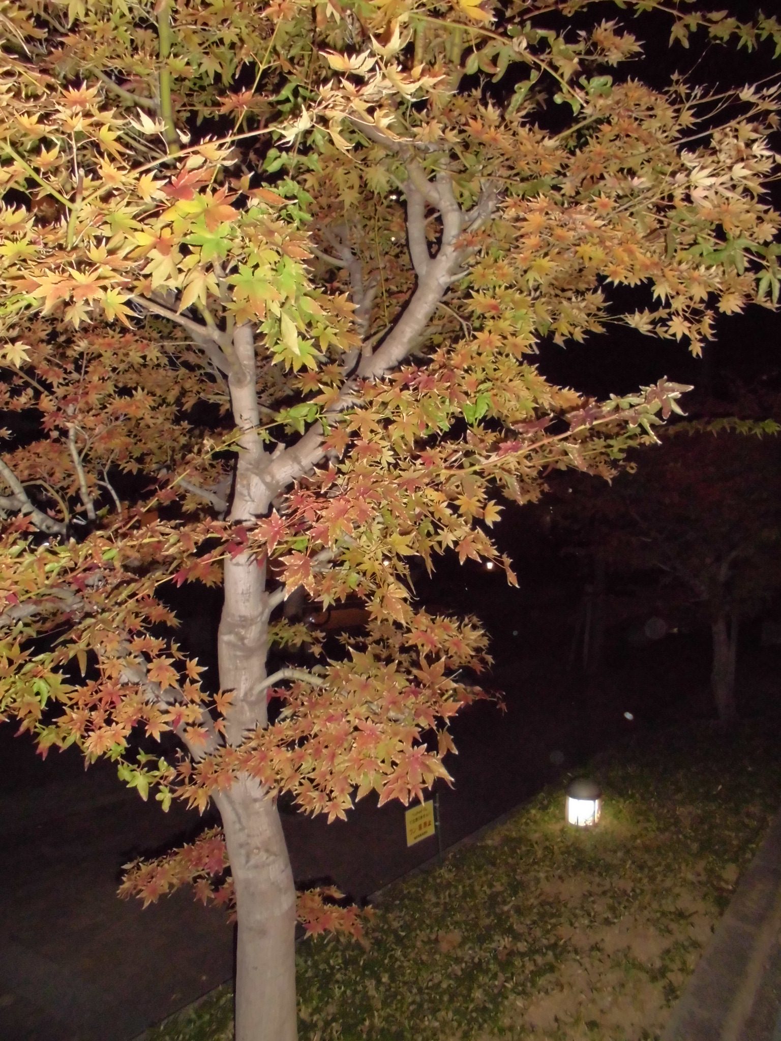 今日は施設の西側に植えられている紅葉の夜の写真をパシャリ♬