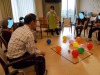 四角形の枠内にある風船をお手玉を使って、できるだけ多くの風船を枠外に競うレクで、簡単そうに見えてこれがなかなか難しい!