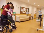 おそるおそるボールを持つ方も、皆さんの応援で「それっ!」