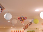 凧や羽子板などで装飾された3階ロビーが