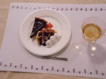 カットしたロールケーキにクリームやフルーツを