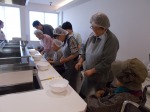 次に型に入れ、指の腹で押しながら付添のスタッフと一緒に形を整えていきます。