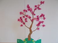 春が近いということで、どの作品も赤や黄色などの気持ちが華やかになるような色を使って、春の花を折り紙などで表現しています♪