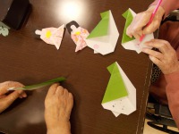 10階では来月のひな祭りにちなんで飾り雛を作成しました!みなさん手先が器用なこともあって、わいわいとお話しながらの作業ながらも、出来あがるパーツはどれもとても綺麗に出来上がっていて、驚くばかりです!