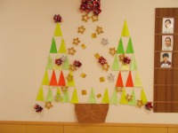 10階では、入居者様の協力も経て大きな壁紙を作成したり、ペットボトルのラベルを使ってリボンを作って折り紙のツリーを作ったりととてもいい雰囲気になっています♪