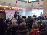 その後はギター療法でグリーンライフでお馴染みとなっている、山下様によるギター弾き語り!いつもとは違うエントランスで力強い歌と楽しいお話で盛り上がりました!