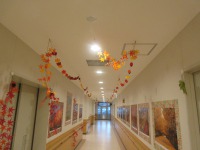現在3階ロビーや東側の廊下で、全国の秋の風景と秋を感じるデコレーションを行っています!