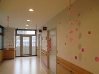 今回は春っぽさを出すため、さくらの花やはなびらを一面出してとても明るい雰囲気に変わりました!入居者様も様変わりした昭和ロードに驚かれていた様子で、『いつものまに桜が咲いて明るくていいね』などの声もいただきました♪