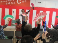 明日の日本舞踊ショーの前日にお越しいただき、本日はご入居者さん対象にシルバーエクササイズ(扇)をしていただきました。扇を使って座りながらのエクササイズでしたが、皆さん、芸者さんになりきりとても楽しそうに踊っておられました。