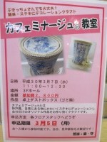 3月7日(水)の11時から3階ホールにて行います!材料費として2800円がかかります。