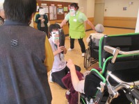 物陰にひそんでいた鬼が登場すると待ってましたとばかりに、皆さん一斉に豆を投げて笑い声があがりました!普段静かな方も豆を元気よくまいて満面の笑みなったのがとても印象的でした♪笑う門には福来るということで邪気を払いつつ、福を呼び込んだのではないでしょうか?